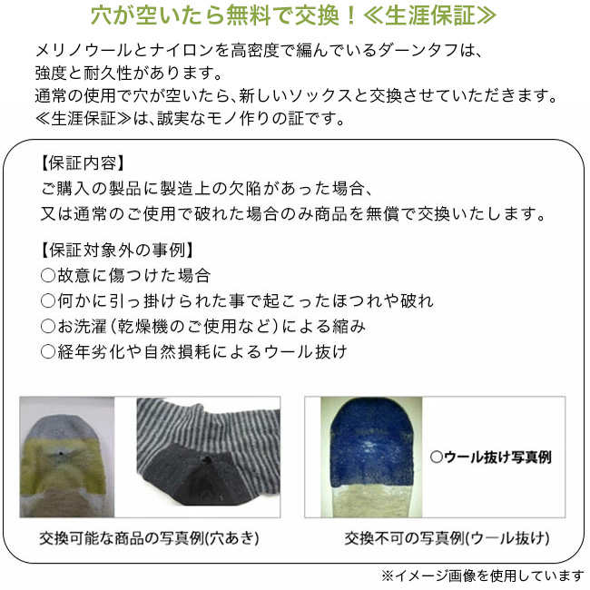 ・ダーンタフソックスを長持ちさせるために、ソックスを裏返して、液温40℃を限度とし、洗濯機で弱水流で洗ってください。