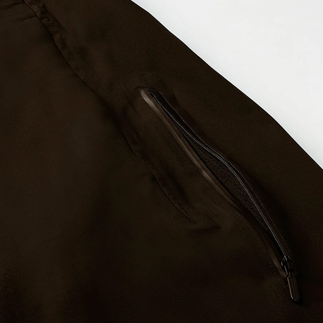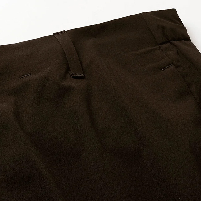 防水パンツというアウトドアライクになりやすいアイテムながら、雨天時のみならず、ビジネスシーンでも着用可能な洗練されたシルエットと機能性を兼ね備えたデザイン。