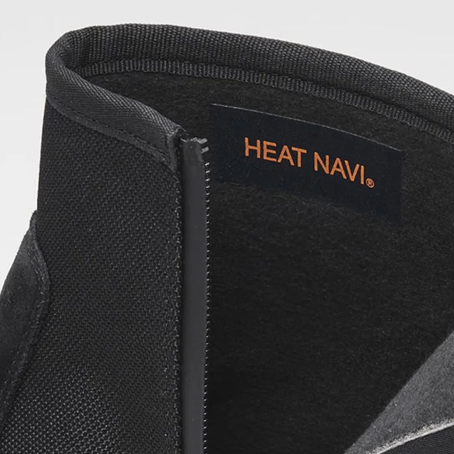 太陽光の赤外線を含むほぼ全ての光の波長を熱に変換するデサント独自の蓄熱保温素材ヒートナビ(HEAT NAVI)を内側の肌に接する面に採用。