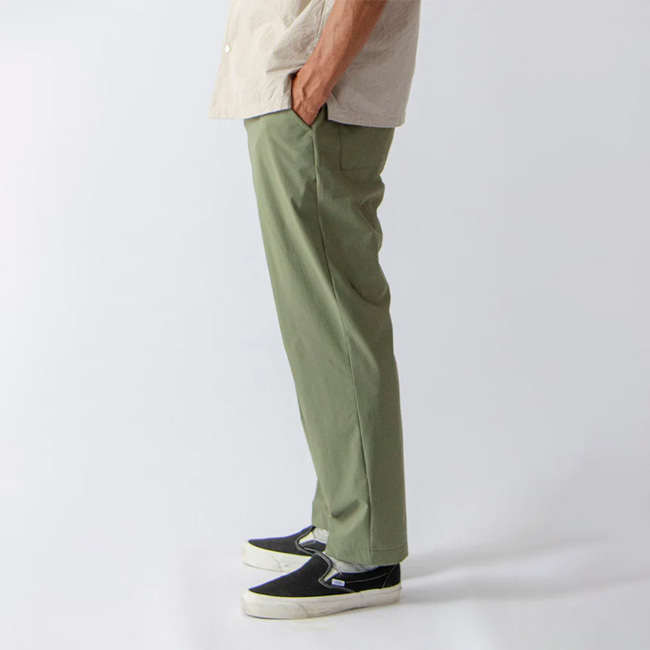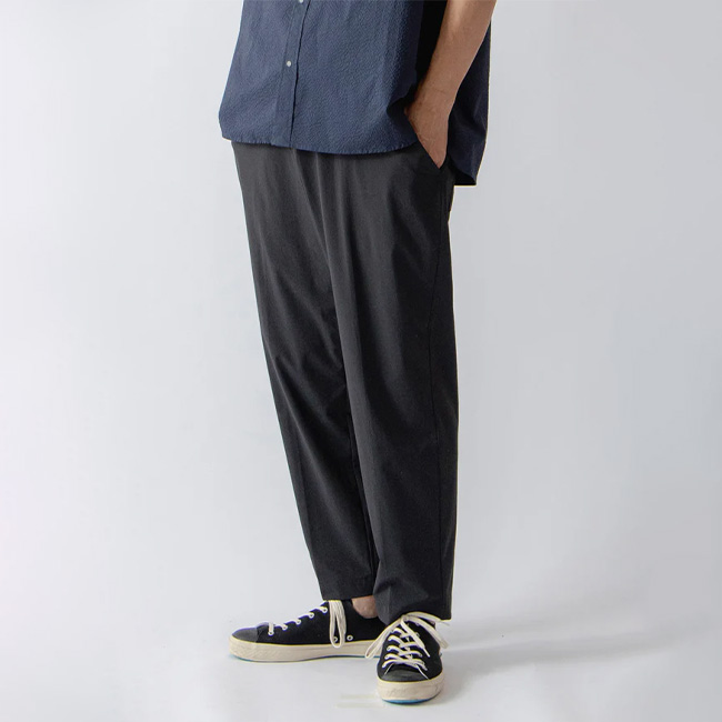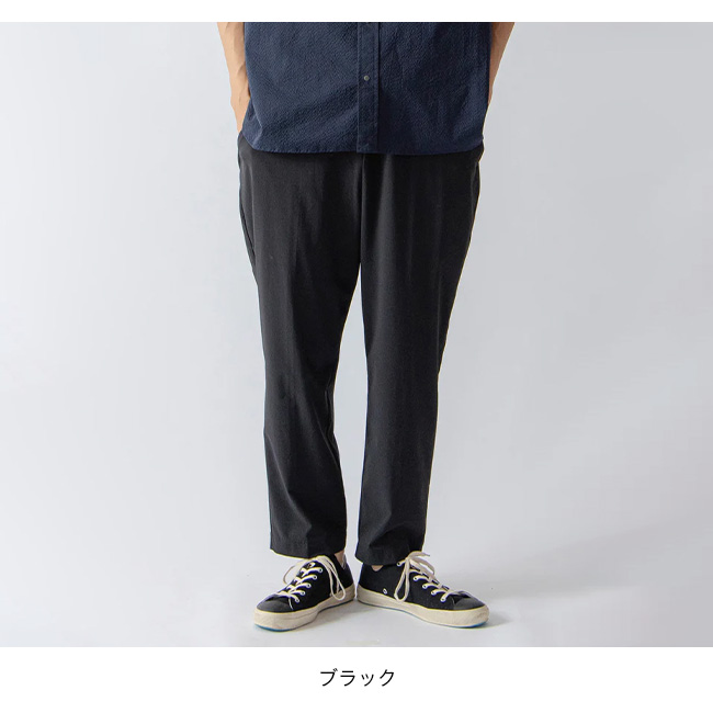 イージーパンツでありながら足全体をキレイに見せてくれるテーパードシルエット、 シンプルなディティールとキレイ目な素材感でコーディネートの幅が広く、お仕事からお休みまで、デイリーに使えるパンツに仕上げています。