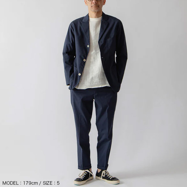バンドカラービッグシャツ、シアサッカートラベルパンツ、シアサッカーリラックスショーツと同素材、同色展開です。