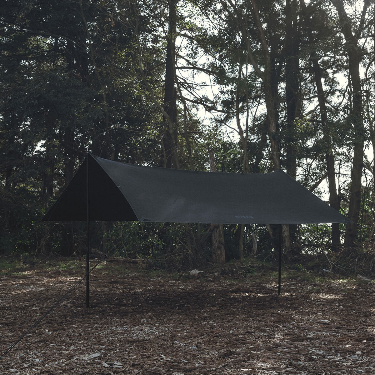 形状は汎用性の高いスクウェアタープで、テープループ10ヵ所、グロメット9ヵ所の計19ヵ所を備え、多彩な張り方が可能です。