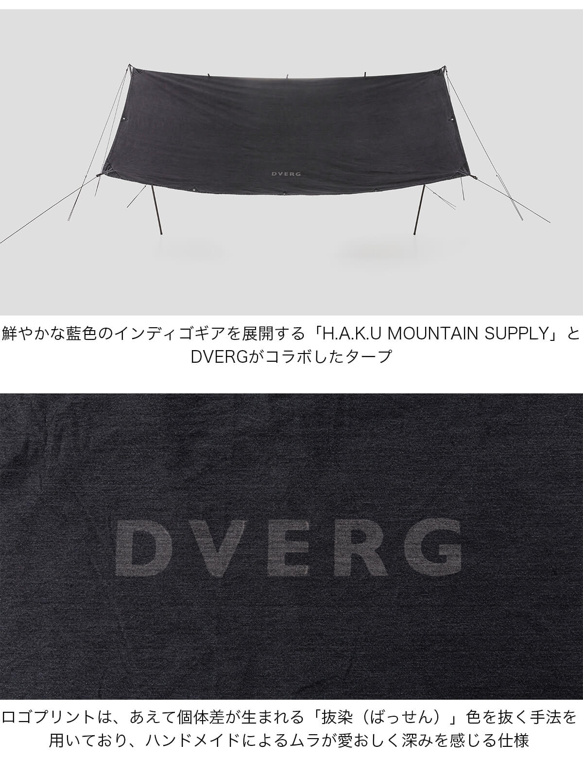 ドベルグ×ハク タープ DVERG×H.A.K.U HK-M500-BV スクウェアタープ 四角 ファミリー ソロ 難燃 撥水 限定 岡山 デニム ハンドメイド 抜染 おしゃれ キャンプ アウトドア