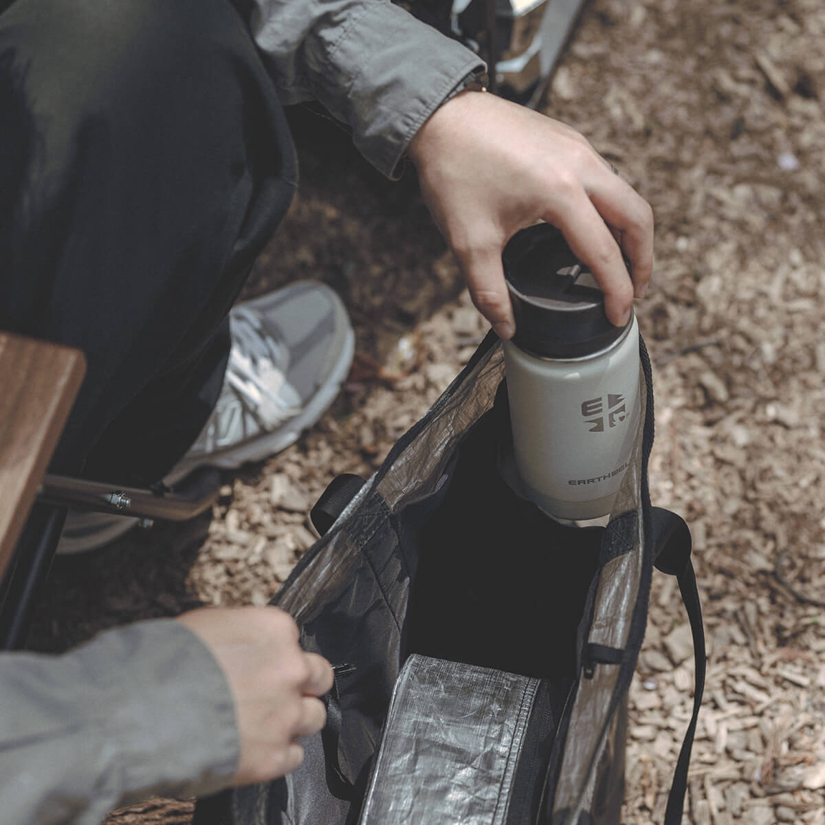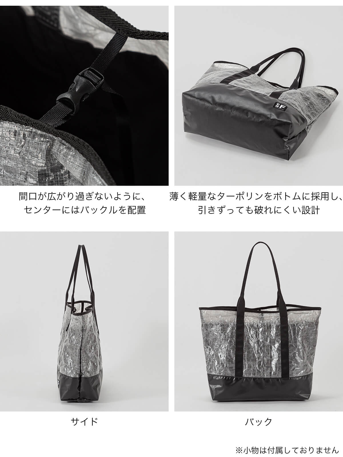 ボトムには薄くて軽量なターポリンを採用し、アスファルトで引きずっても破れることはありません。