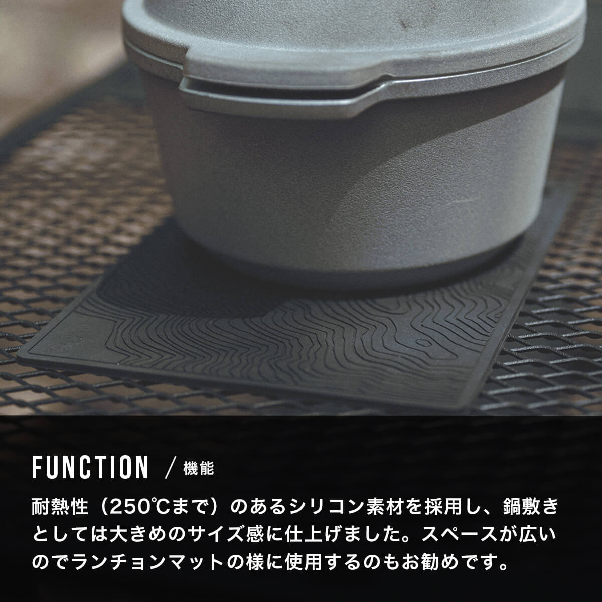 耐熱性(250℃まで)のあるシリコン素材を採用し、鍋敷きとしては大きめのサイズ感に仕上げました。
