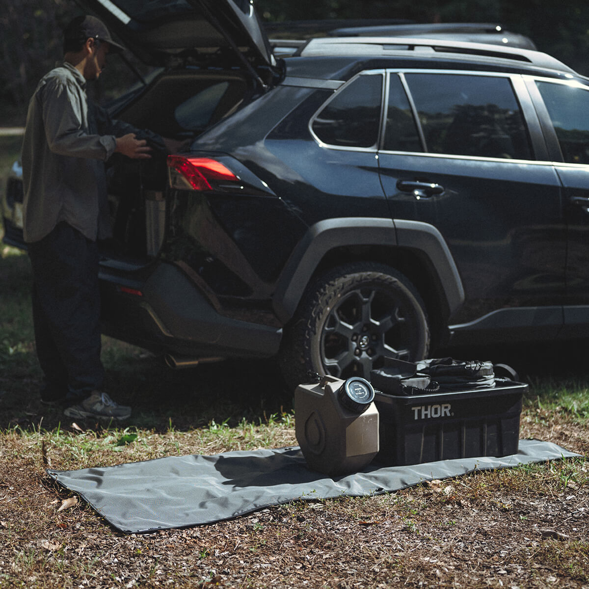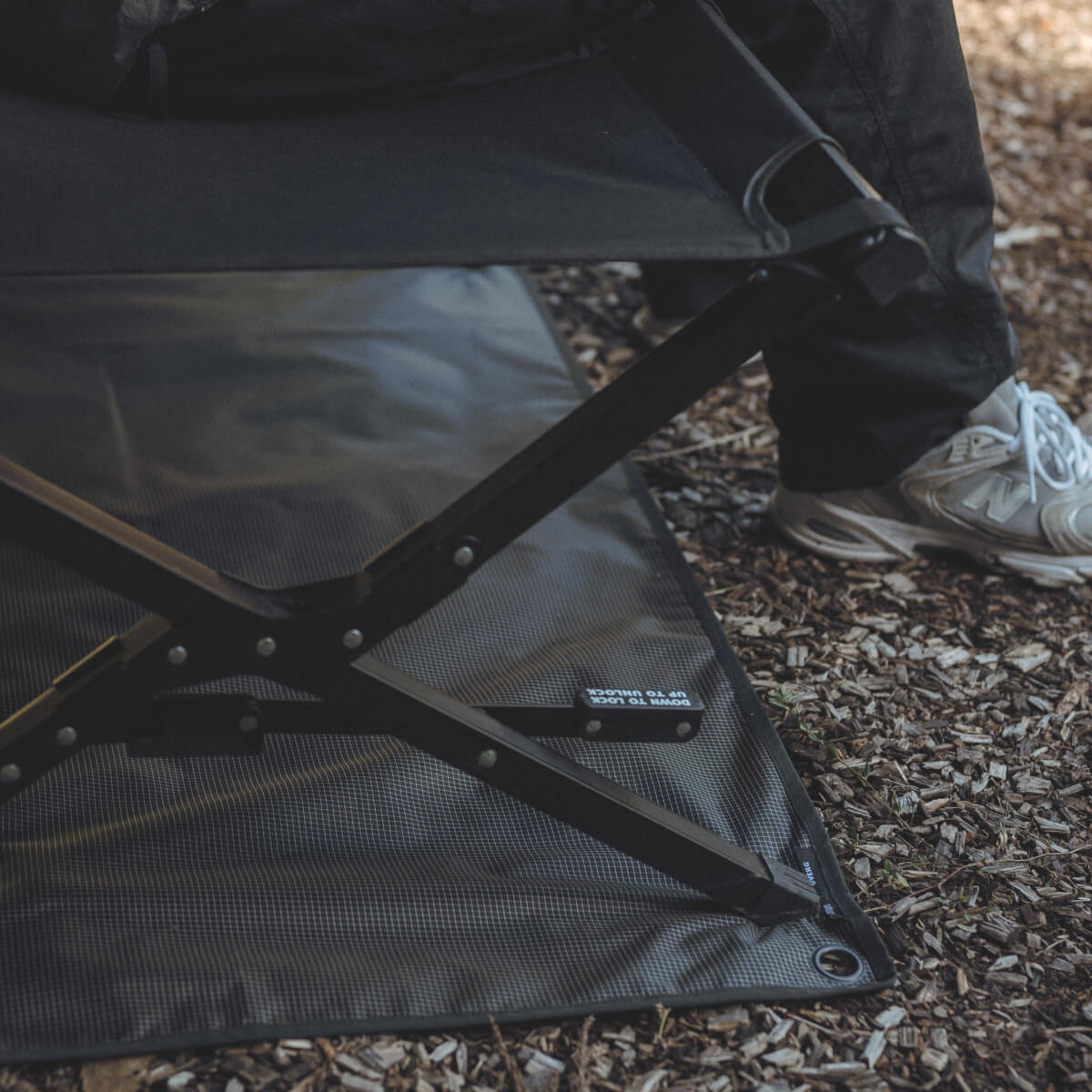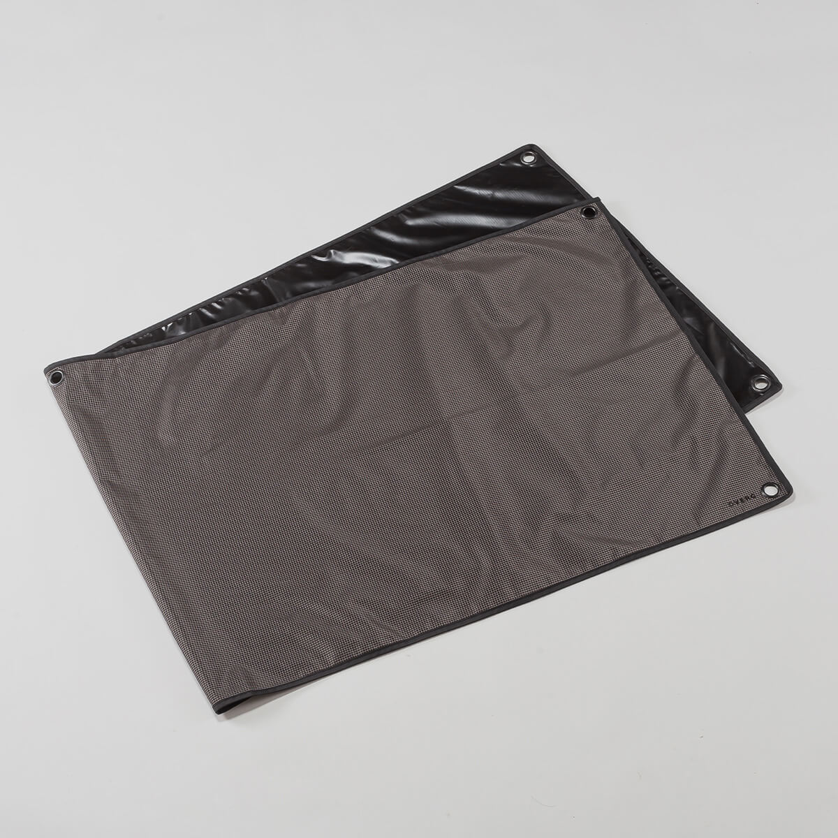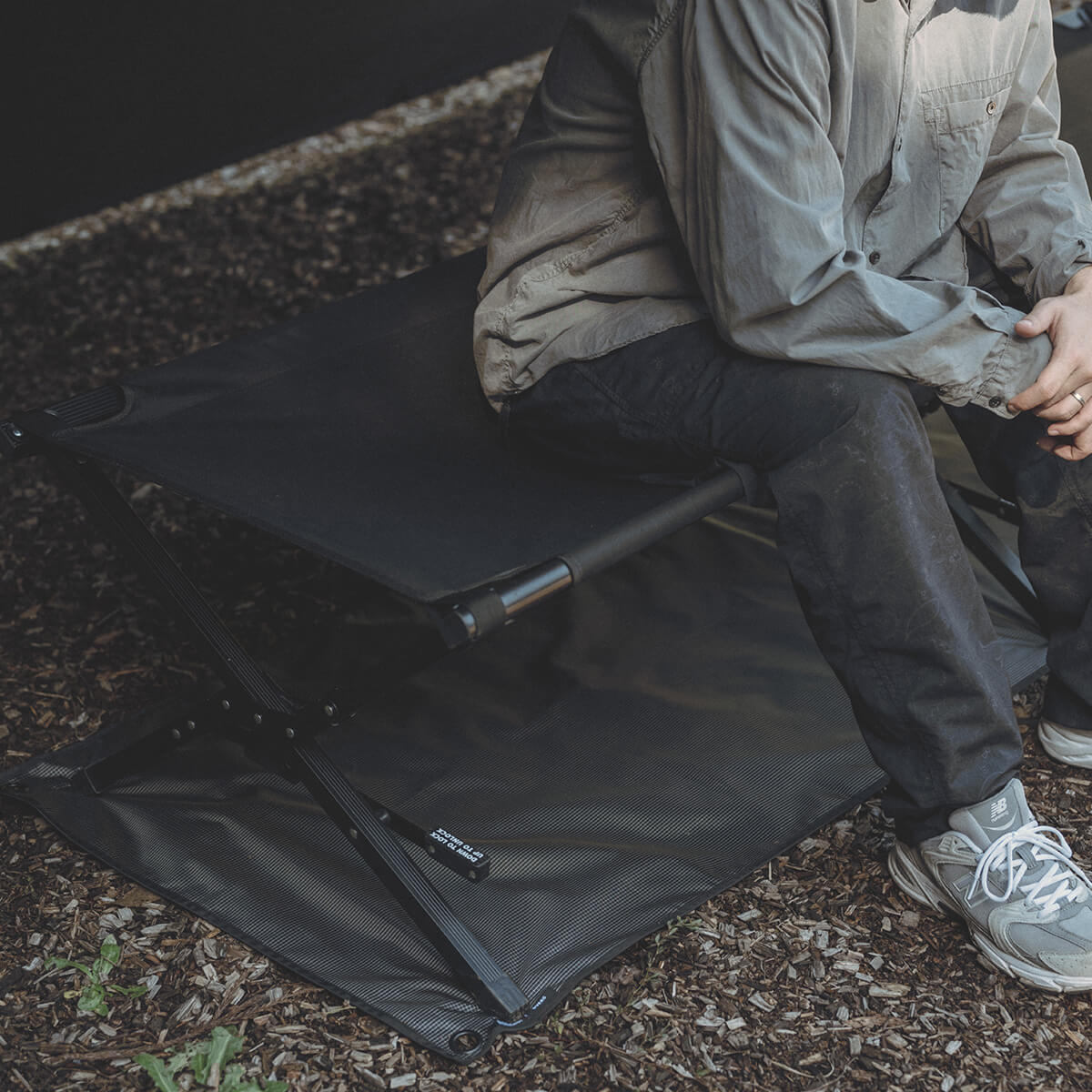 ブラックのリップストップ生地に、DVERGのロゴをプリントした別注限定仕様で、スタイリッシュに仕上げています。キャンプでは荷物置き場として、車内では傷・汚れ防止として使いやすい形とサイズ感です。