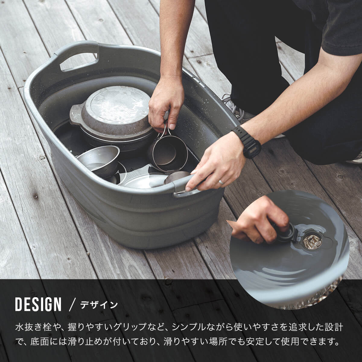 また、水抜き栓や、握りやすいグリップなど、シンプルながら使いやすさを追求した設計です。