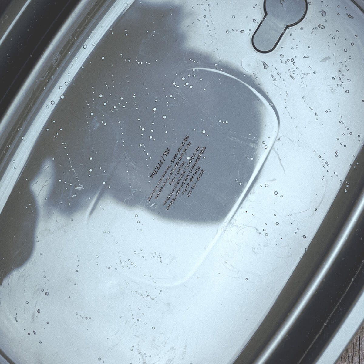 側面のブランドロゴと底面のスペック表記が、デザインを引き締めます。