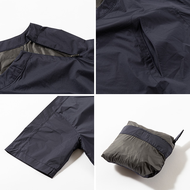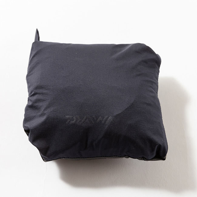背面頸部に配したポケット内に収納できるパッカブル仕様。
