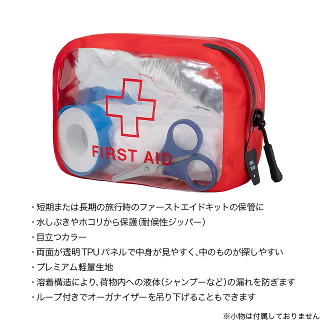 耐候性ジッパー付きの透明な救急キットバッグ。
