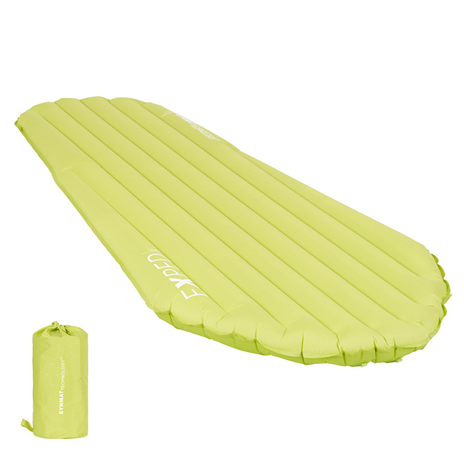 リサイクル素材のTexpedloftが上下のエアチャンバーに溶着されており、空気の循環によるコールドブリッジ(冷気の通り道)を防ぎ、下からの冷えをしっかり遮断します。