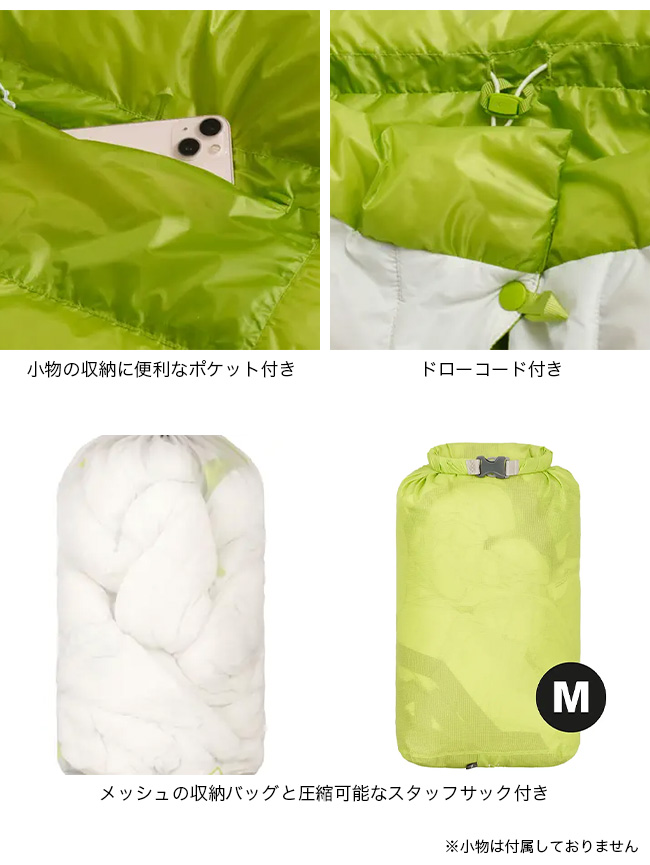 クラス最高レベルの重量対保温性能比を誇り、高品質で耐久性のあるマスコビーダックダウンを中綿に使用。シェルとライナーには100%リサイクルナイロンを採用し、環境にも配慮されています。