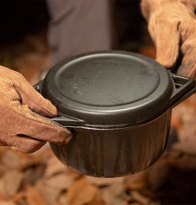 極上のフライパンとして使える蓋炭を置いてオーブンにも超高精度な蓋と本体の嵌合ウォーターシールで密閉されるので、無水調理も大得意です。