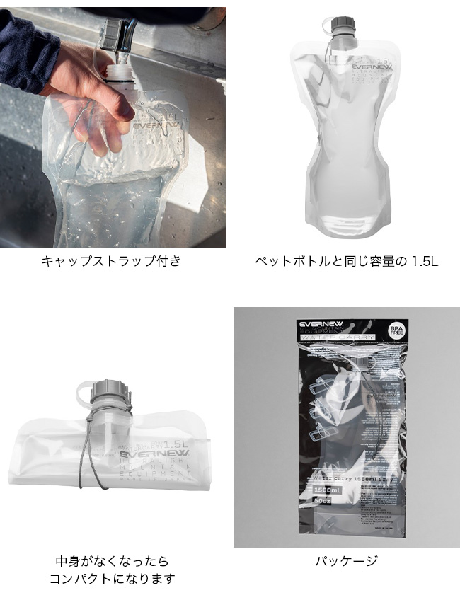 エバニュー ウォーターキャリー1500ml EVERNEW Water carry 1500ml EBY668 ソフトボトル 給水 水筒 登山 キャンプ アウトドア