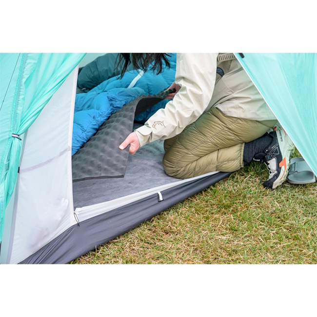 従来タイプのクローズドセルマットに比べ、点で支える独特な寝心地をプラスし、断熱性とクッション性を確保。