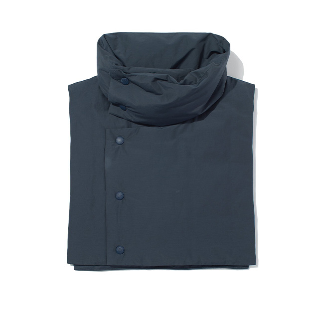 取り外し可能なスタンドカラーパーツ付きで、スタンドカラーとしても、Vネックのすっきりとしたシルエットでも着用可能。