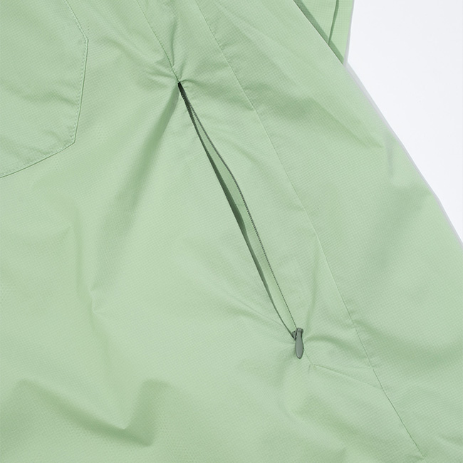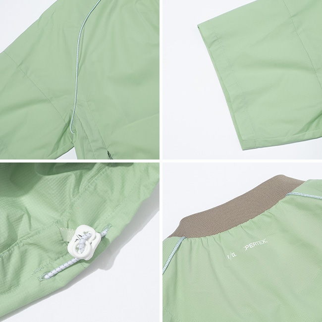 ・特殊な二重折り構造で耐候性と通気性のバランスをとることで、衣類の中を快適に