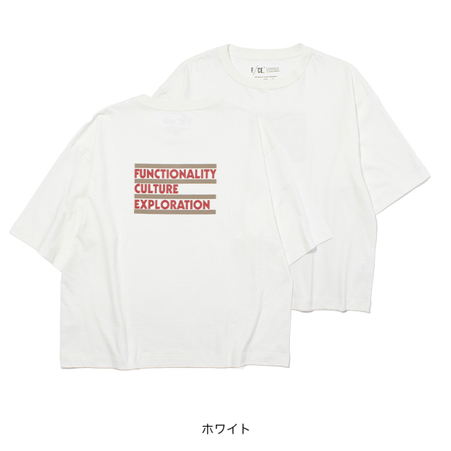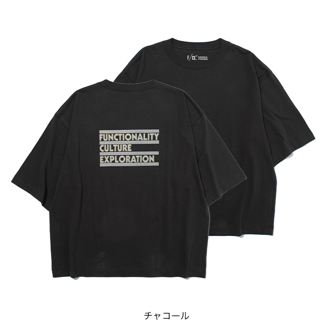 背面には「FUNCTIONALITY CULTURE EXPLORATION」のロゴを、バンドTシャツのようなデザインで大胆にプリント。