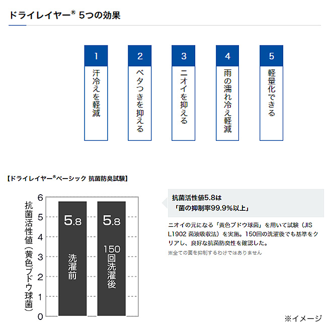 吸汗速乾ウエアの下に着て、汗冷えや汗のベタつきを軽減するための肌着・ドライレイヤー®の定番シリーズです。