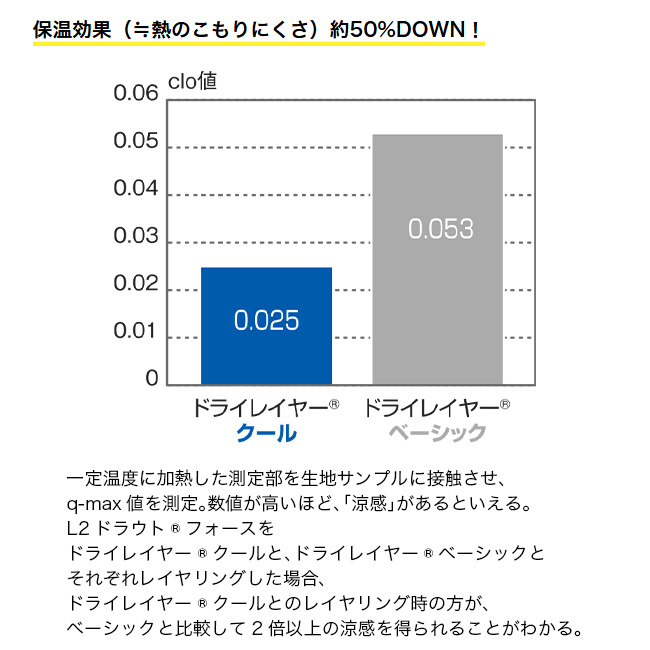 ※ドライレイヤー®は吸汗速乾ウエアとの重ね着で効果を発揮します。