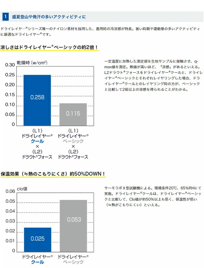 ※ドライレイヤー®は吸汗速乾ウエアとの重ね着で効果を発揮します。肌に直接ご着用いただき、その上に吸汗速乾ウエアをレイヤリングしてください。