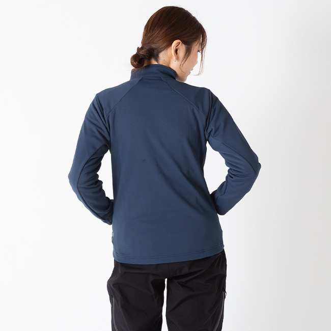 控えめな保温性で、秋冬シーズンの運動量が多いアクティビティに適したミッドレイヤーです。