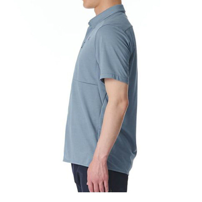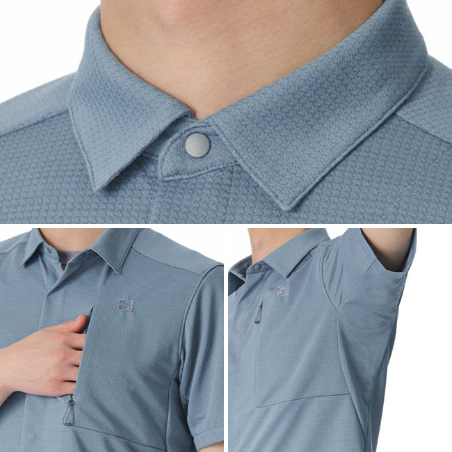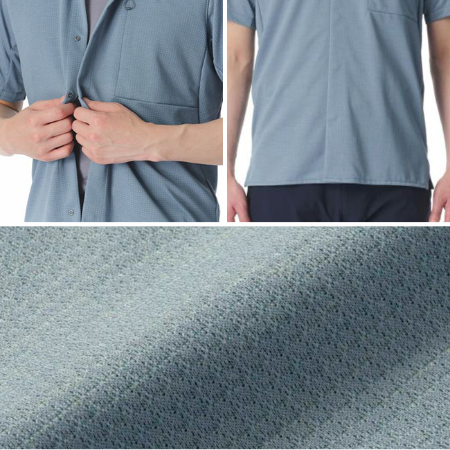 シャツとして一般的な織物を使わず、ニット地にすることで高い通気性と動きやすさを実現しました。ニット素材には独自素材のラミースピン®糸と半永久吸汗を可能にする特殊ポリエステルをハイブリッドし、ベースレイヤー並みの優れた吸汗速乾性も備えます。