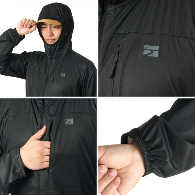ミニマルなデザインながら、フード内収納のポケッタブル仕様やリンクベント®、風の吹き込みを防ぐ袖口・裾のドローコードなど山岳環境で活きるディテールも充実。