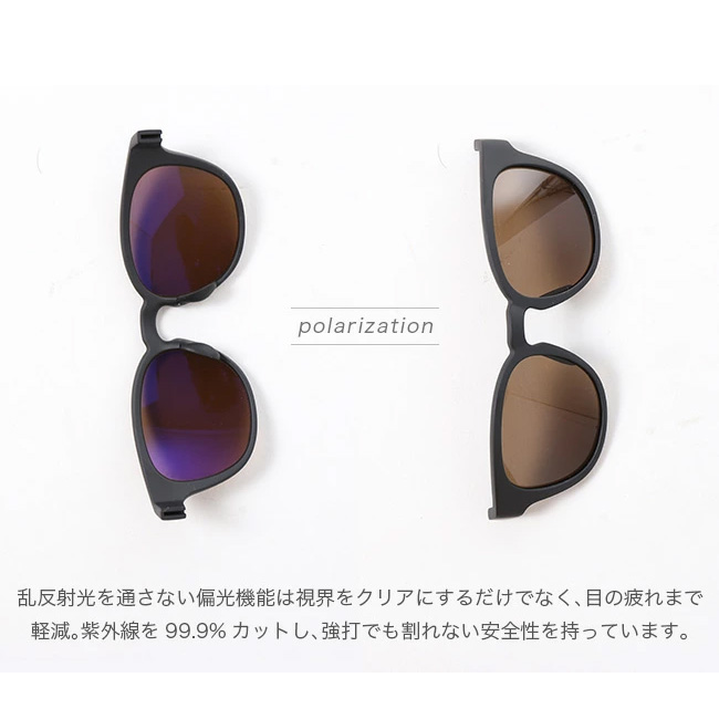 偏光レンズを採用することにより、視界をクリアにするだけでなく目の疲れまで軽減。