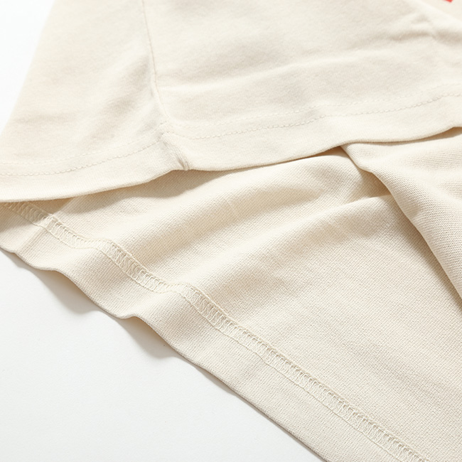 丈夫な6.5オンスのコットン・ジャージー製で、さらりとした手触り。丈夫なリブニットの襟は洗濯後も形を保ちます。