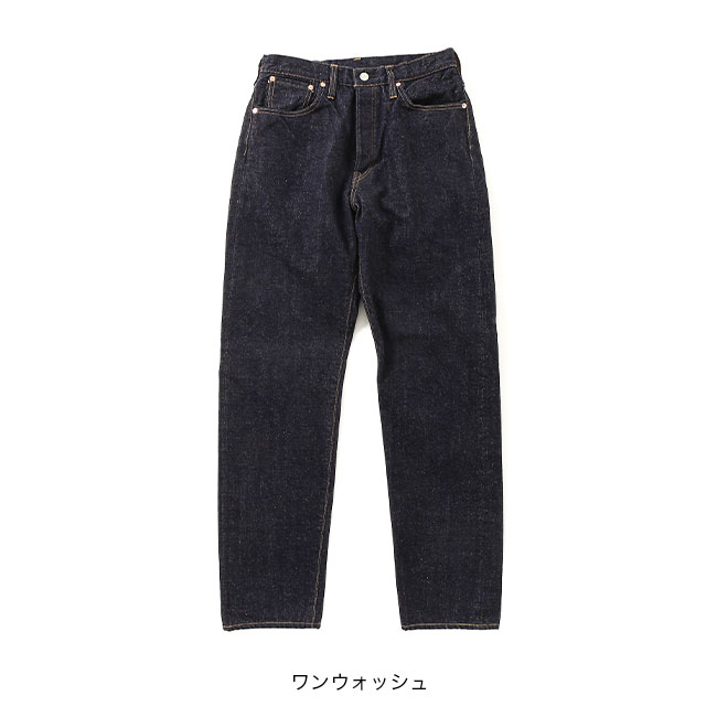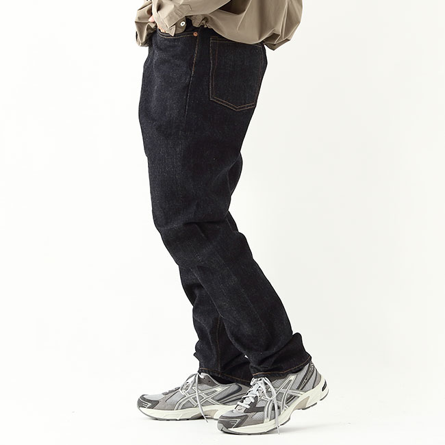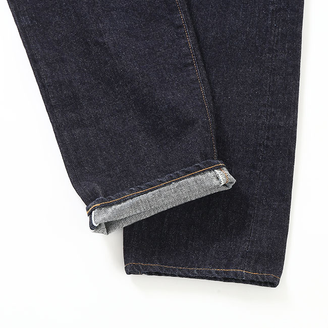 やや深めの股上、ゆとりを持たせたもも周りに程よいテーパードシルエット。ワンウォッシュで染めが深く色が濃い為、色落ちに時間は掛かりますが、自分らしく育てることができるジーンズです。