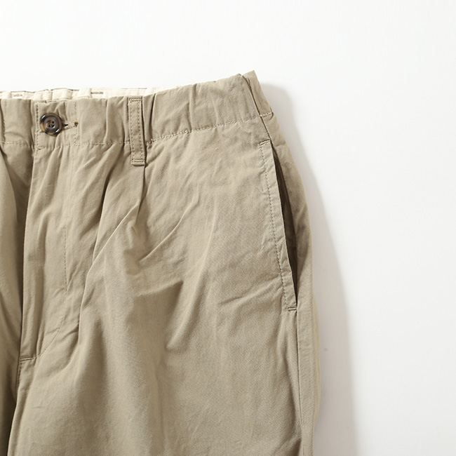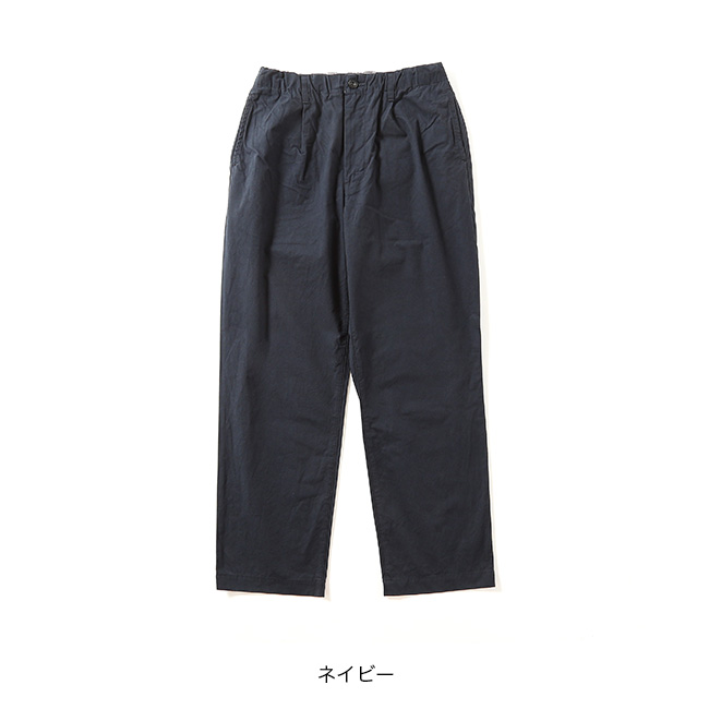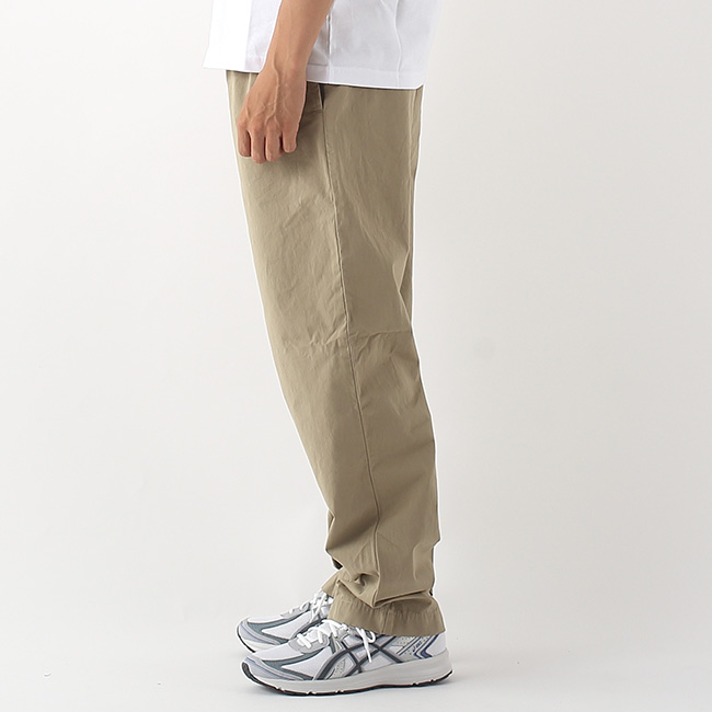 ウエストはドローコード付きのイージー仕様で、長時間の移動やリラックスシーンでも快適に着用可能。高密度なコットンウェザークロスを採用し、肌離れの良いドライな質感と適度なハリ感を実現しています。