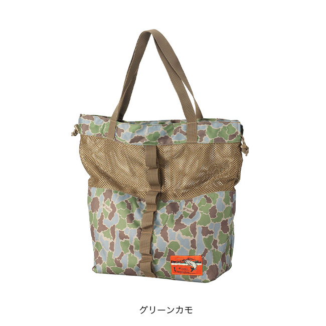 Foxfireオリジナルのフィッシュアイカモフラージュ柄をプリントしたトートバッグです。