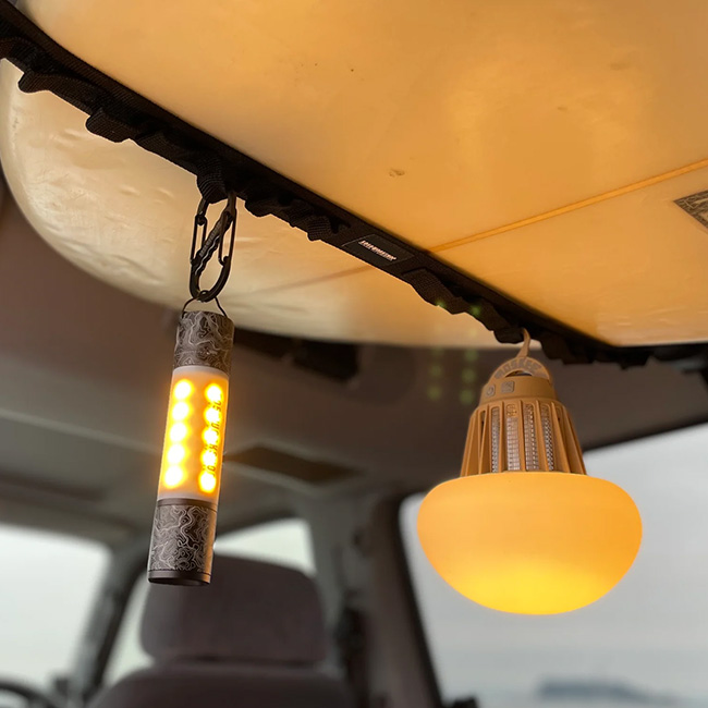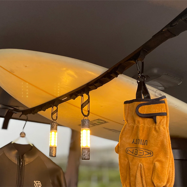 キャンプアイテムの定番ハンギングチェーンが、車用ラックベルトに!
