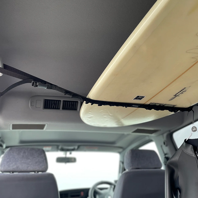 いろいろなアイテムを吊るす事ができるほか、サーフボードやスノーボード・釣竿などのラックベルトとしても大活躍するマルチアイテム!