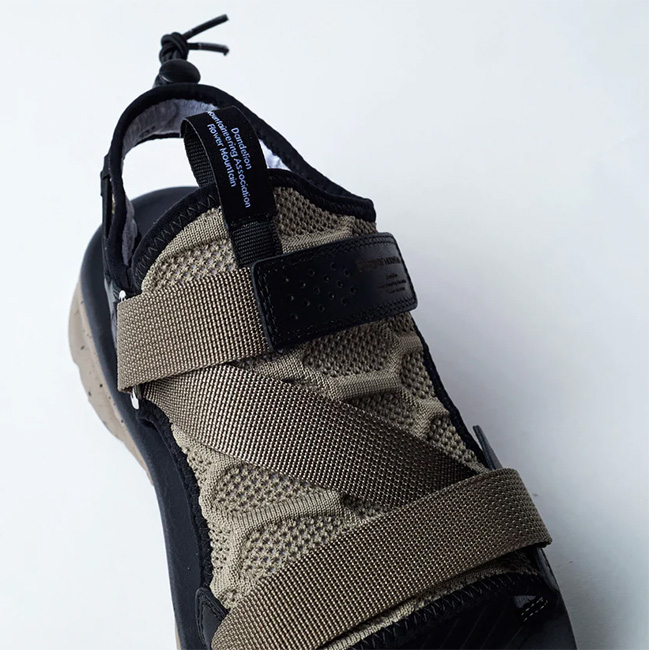 2019年春夏のデビュー以降、数多くの支持を集め続けるブランド代表作の一角を担うモデル。蜂の巣やカメの甲羅など自然界が形づくる安定した構造「ハニカム形状」をモチーフに製作されたメッシュ素材のホールド性能と通気性、フットペットの計算されたクッション性と弾力、地形を選ばない汎用性を誇るグリップソール。
