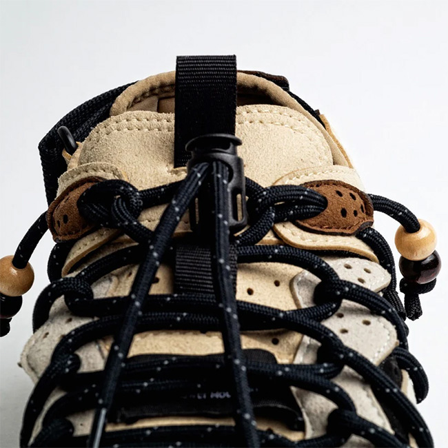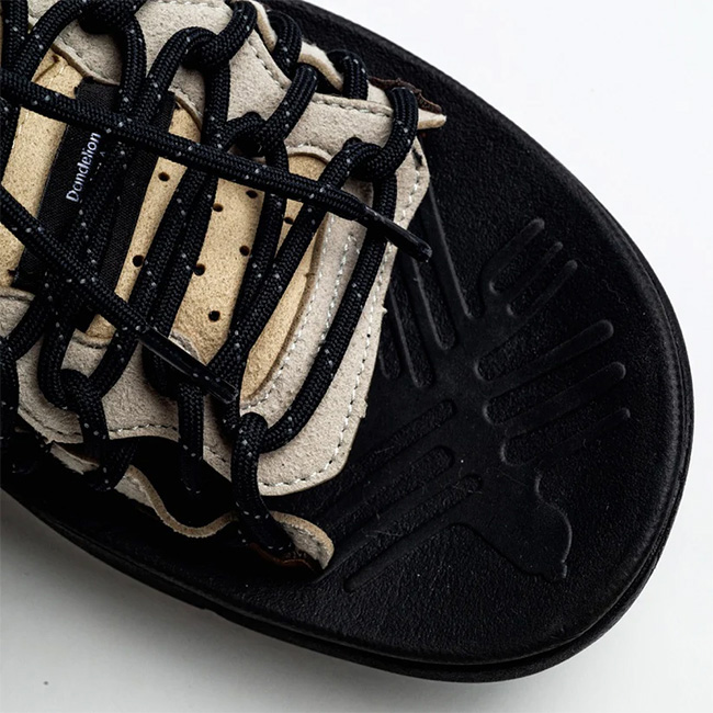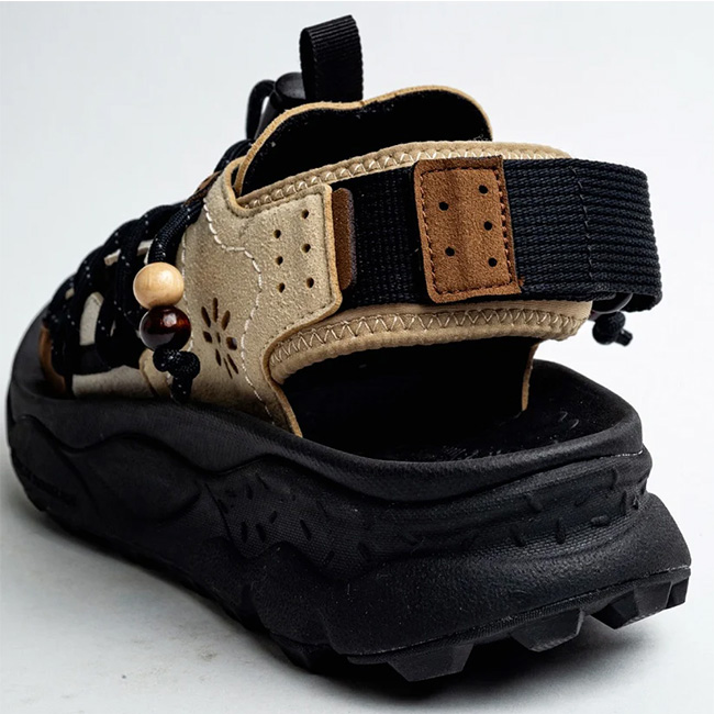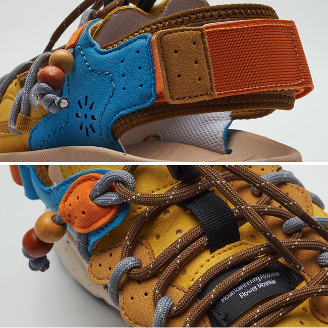 フラワーマウンテンらしい自然モチーフのデザイン曲線と各パーツ、そしてレースエンドにヴィンテージ感のあるビーズを付けたシューレースとでネイティブ感漂う” PUMA PUNKU “。シューレースはレースロック仕様で、容易に長さの調節が可能となっている。