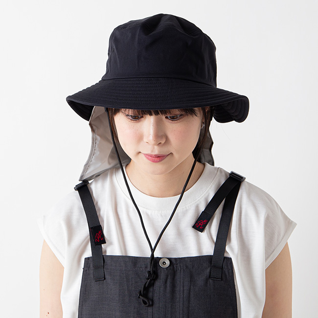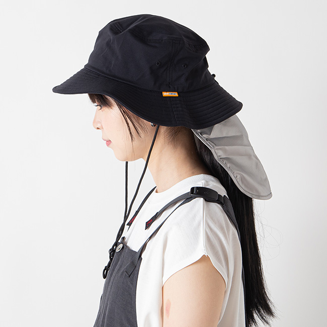 速乾性、通気性を備えたトリコット素材を使用。取り外し可能な首の日除けシェードでしっかりと日差しを遮り、首まわりを紫外線から守ります。