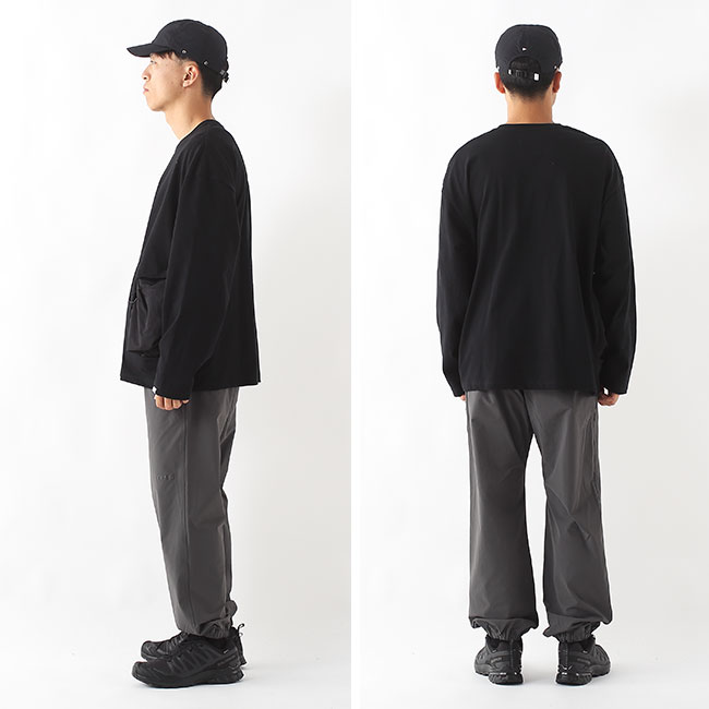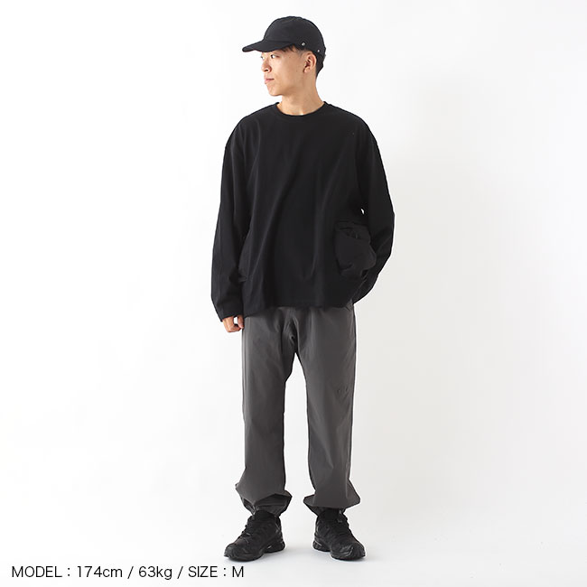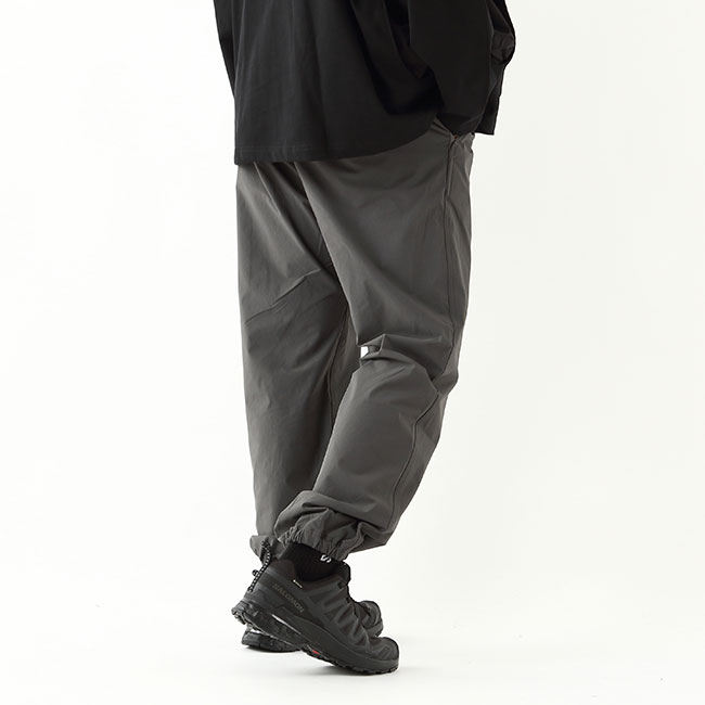 タテ・ヨコ・斜めに伸びる伸縮性に富んだ4WAYストレッチの為、ストレスフリーで着用いただけます。軽量でタフなナイロン素材でドライタッチと製品洗いを施したワッシャー感が特徴。