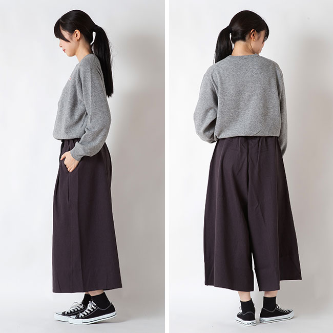 上品で大人っぽい生地感を豊かなフレアで穿きこなせる美しいシルエット。