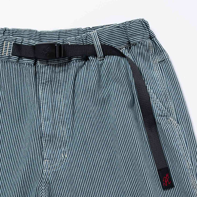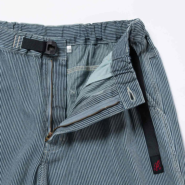 6つのポケット、ループといったワークディテールを備えた、ゆとりあるシルエットのワークパンツは、インディゴとホワイトのストライプが特徴の10oz.ヒッコリーを製品染めすることで、使い込むほどにストライプ部分のコントラストに変化が生まれ、独特の風合を楽しむことができます。■ブランド名:GRAMICCI