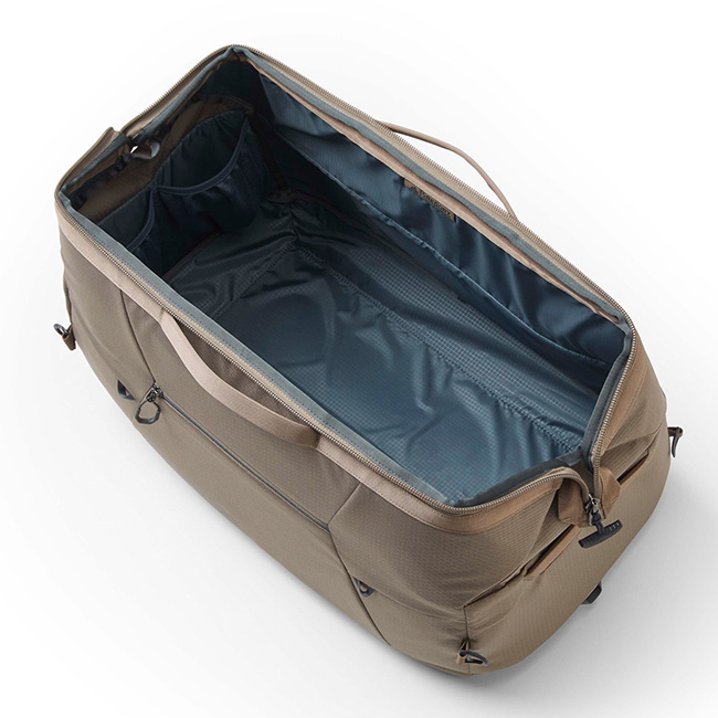 広い内部にはメッシュポケット、パッド入りコンパートメントがあり、テントやキャンプチェア、衣類などの大きなアイテムを収納できます。