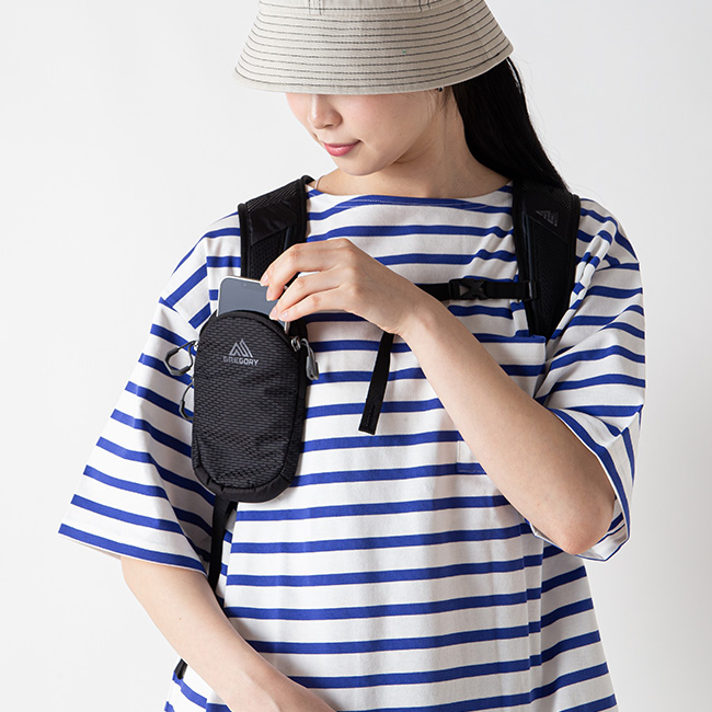 スマホなどの小さなデジタルガジェットの収納に最適です。ショルダーハーネスに簡単かつ、しっかり固定できます。