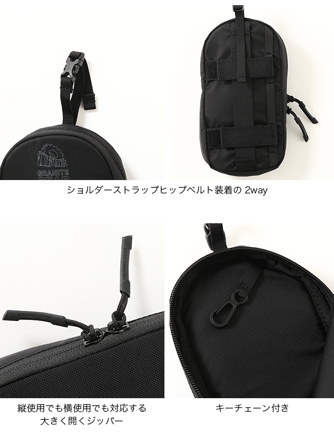 ショルダーストラップだけでなく横向きにしてパックのヒップベルトやパンツのベルトにも装着可能な2WAYタイプです。