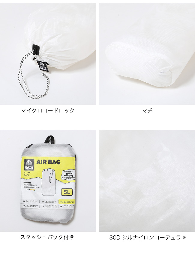 グラナイトギア ホワイトエアバッグ 5L GRANITE GEAR WHITE AIR BAG 2210900202 スタッフサック スタッフバッグ 荷物 収納 旅行 キャンプ アウトドア