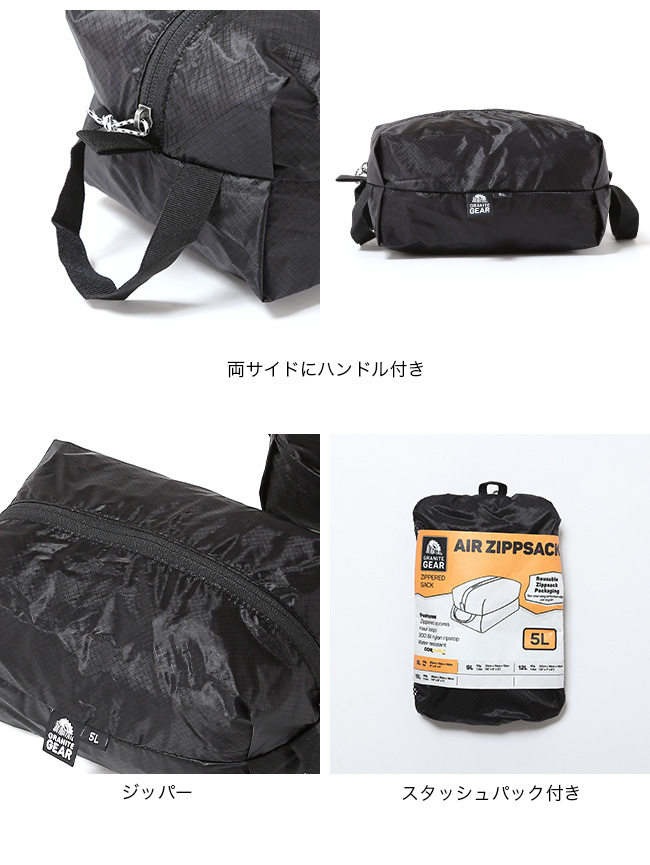 グラナイトギア ブラックエアジップサック 5L GRANITE GEAR BLACK AIR ZIPSACK 2210900198 スタッフサック スタッフバッグ 荷物 収納 旅行 キャンプ アウトドア