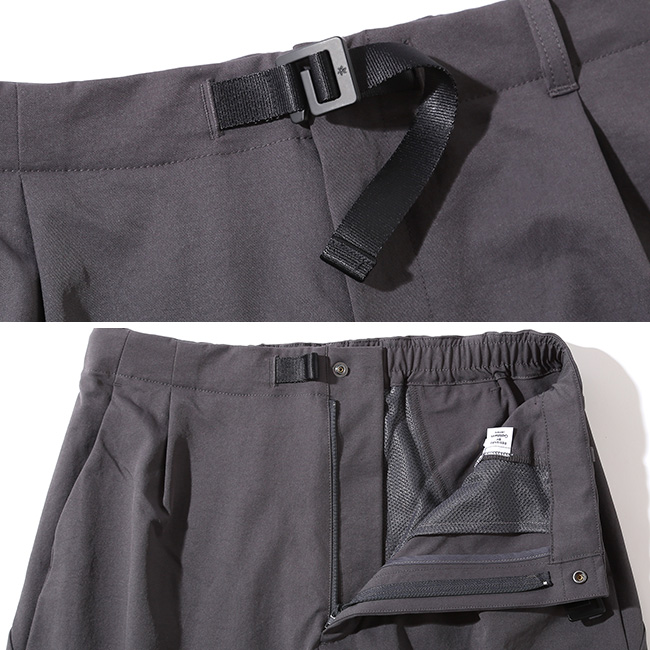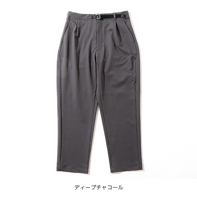 腰まわりはタックを入れてややゆったりと仕上げ、裾にかけてテーパードしたこだわりのシルエットと、快適な穿き心地が特長。