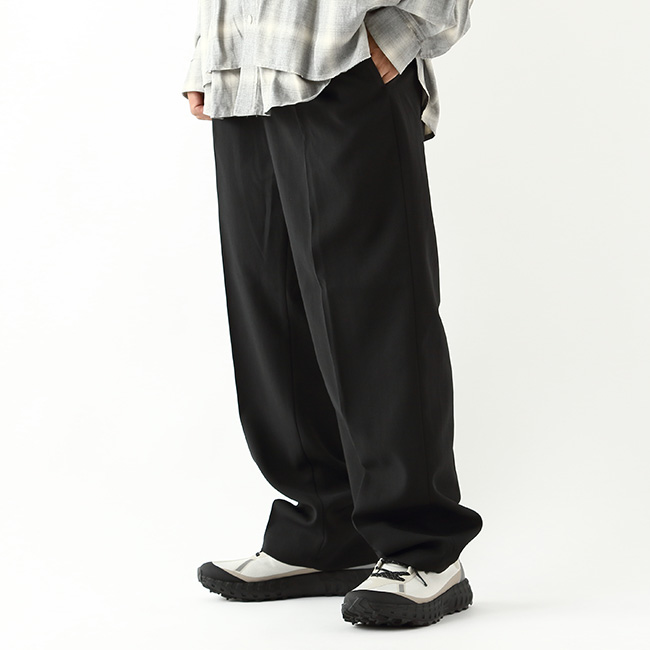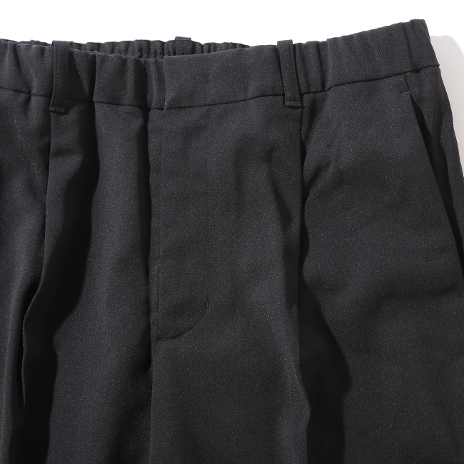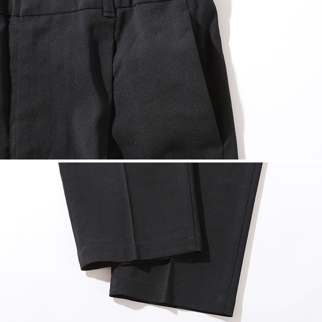 ウールのような風合いをもつポリエステル素材を使ったパンツ