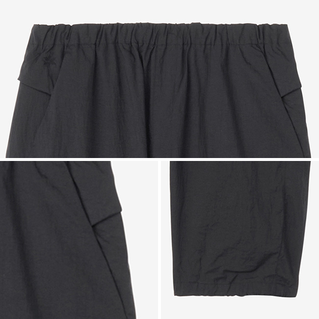 衣服内で空気が循環しやすいためムレにくいリラックスシルエットで、ひざ下は足さばきを考慮したテーパード仕様。