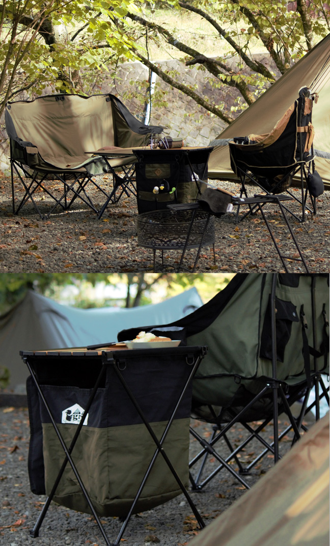 ジーアールエヌアウトドア 目隠しサイドテーブル grn outdoor MEKAKUSHI SIDE TABLE GO0467F ポケット付き アルミ 折り畳み キャンプ